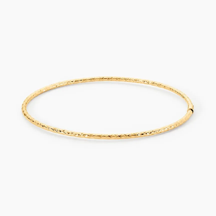 Bracelet Jonc Or Jaune 375/1000 Fil Rond Diamante Diametre 65Mm