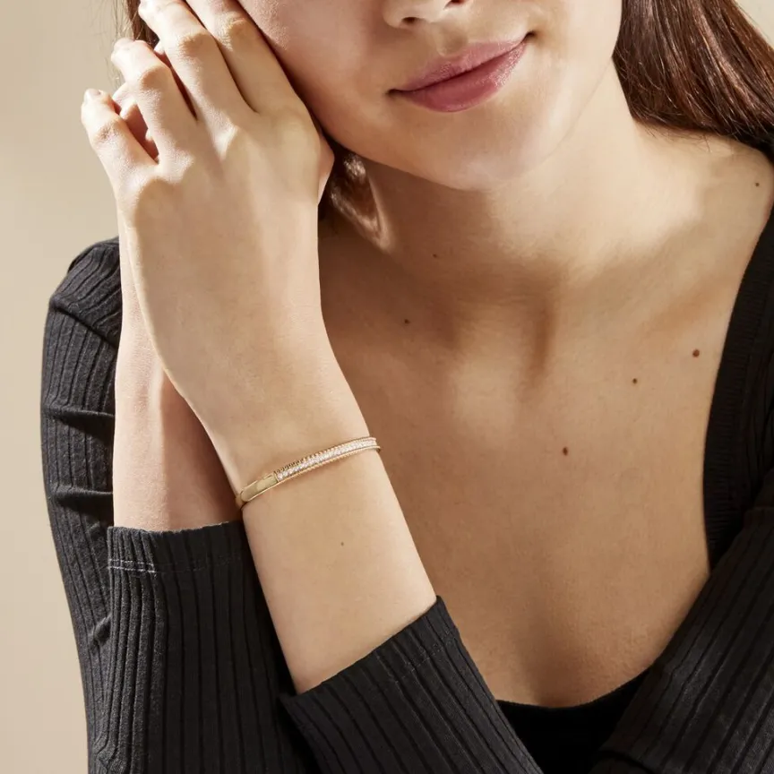 Bracelet Jonc Plaqué Or Jaune Motif Perle Oxydes De Zirconium