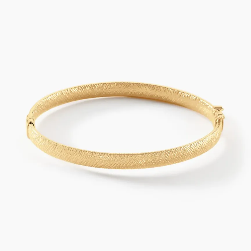 Bracelet Jonc Or Jaune 375/1000 Effet Cisele Diametre 60x50mm