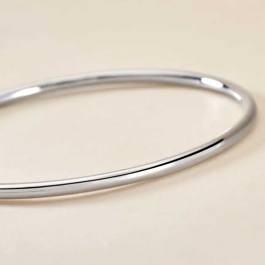 Bracelet Jonc Argent Blanc 925/1000 Fil Rond Massif Largeur 4mm Diametre 65mm