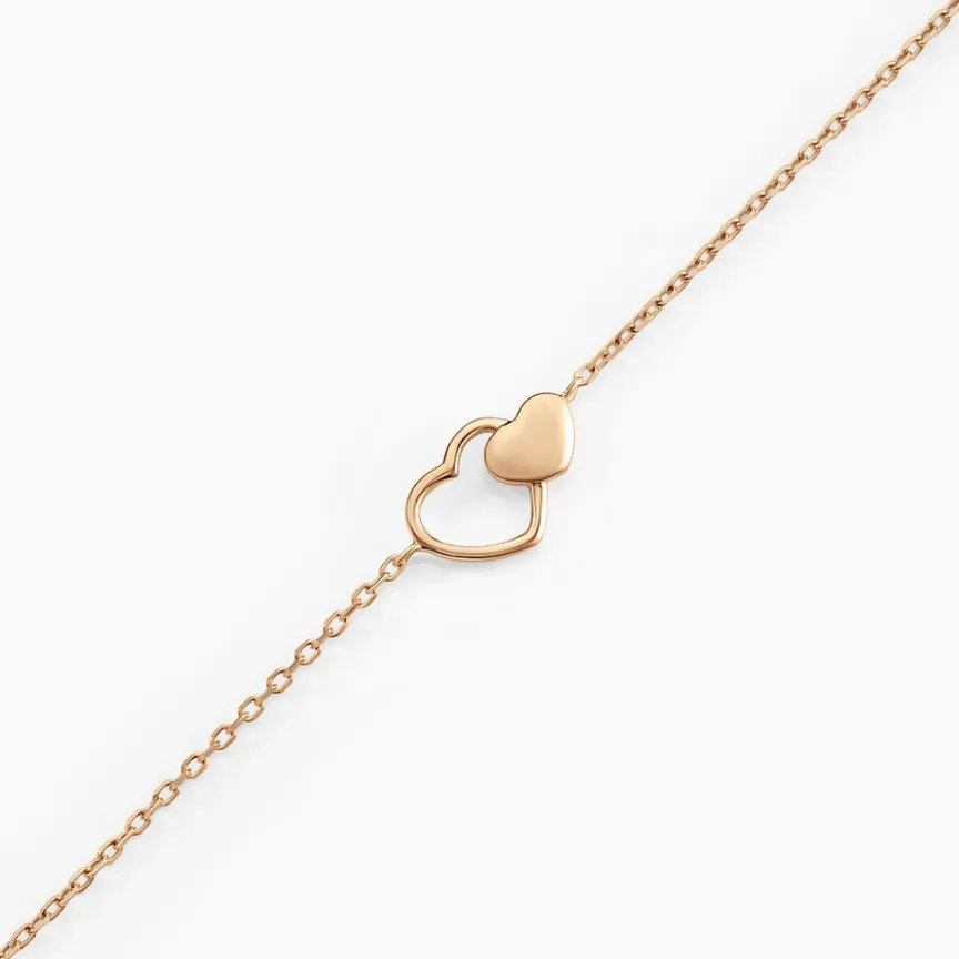Bracelet Plaqué Or Jaune Maille Coeurs Doubles Maille Forcat 18cm