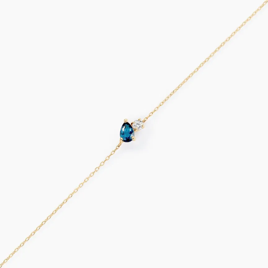 Bracelet Or Jaune 375/1000 Gouttes Topaze Bleu London Et Oxyde De Zirconium Serti Griffes Maille Forcat 16+2cm
