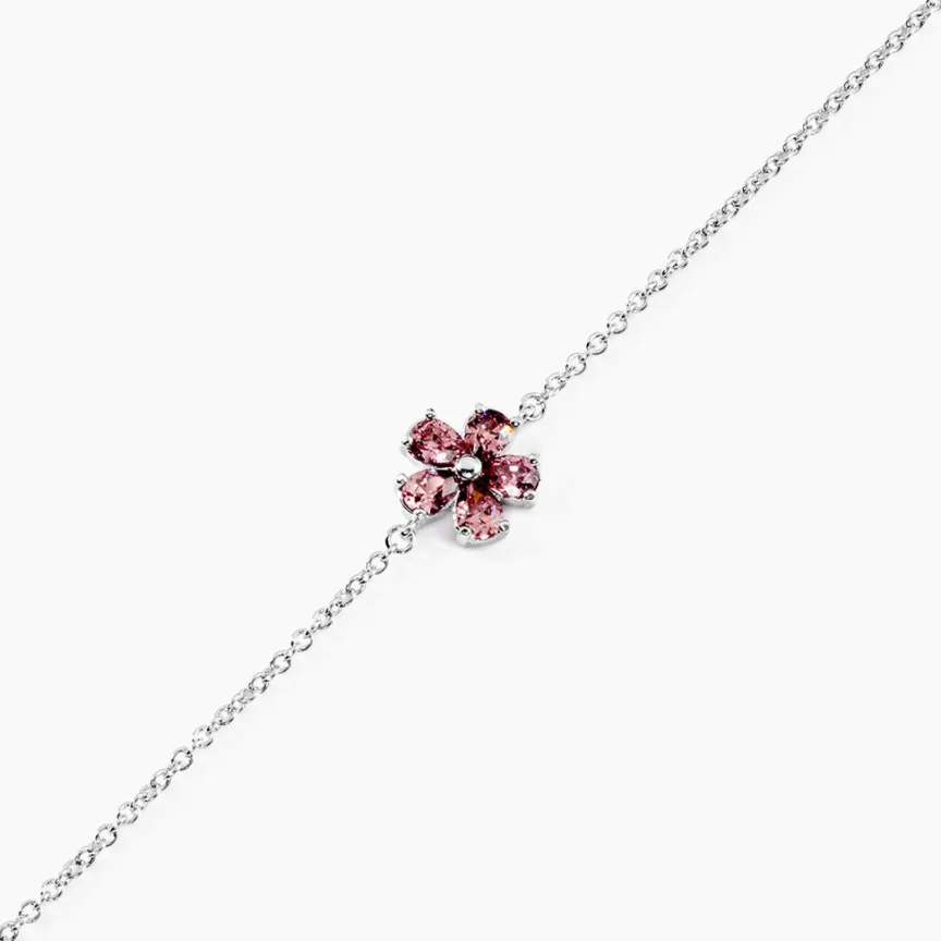 Bracelet Argent Blanc 925/1000 Fleur Pierre D’imitation Rouge Maille Jaseron 16+2cm
