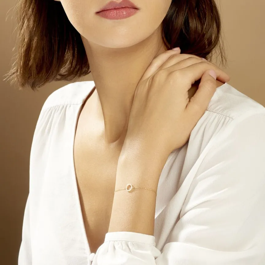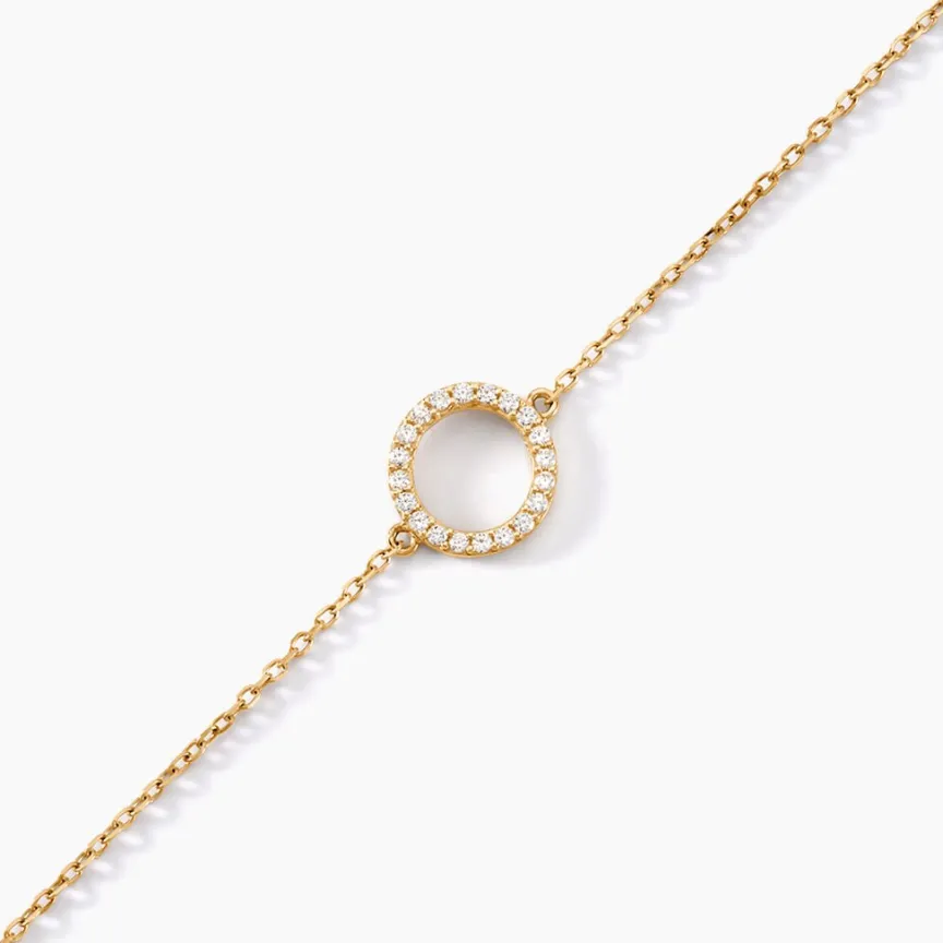 Bracelet Or Jaune 375/1000 Cercle Creux Pave Oxyde De Zirconium 18cm