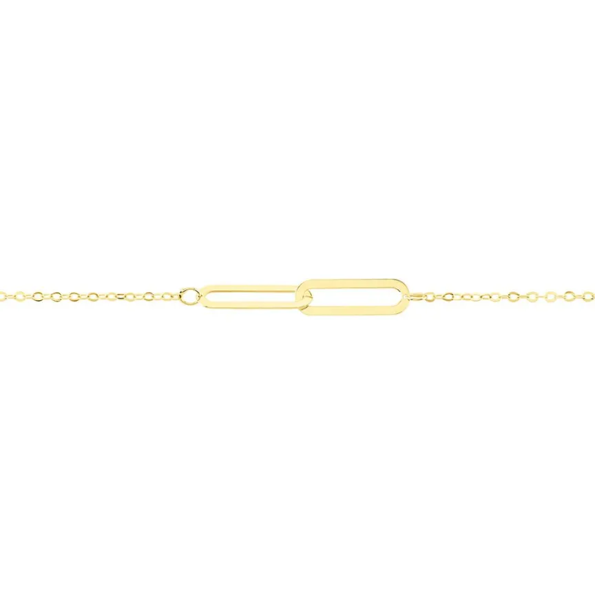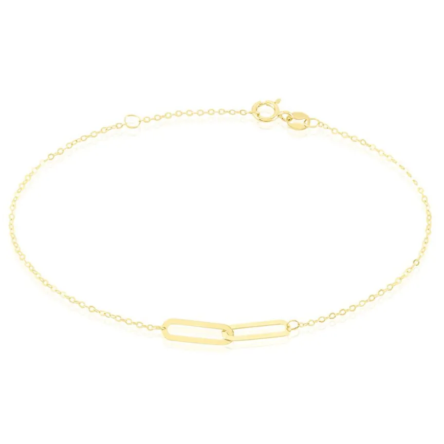 Bracelet Or Jaune 375/1000 Maillons Ajoures Maille Forcat Ronde 18cm