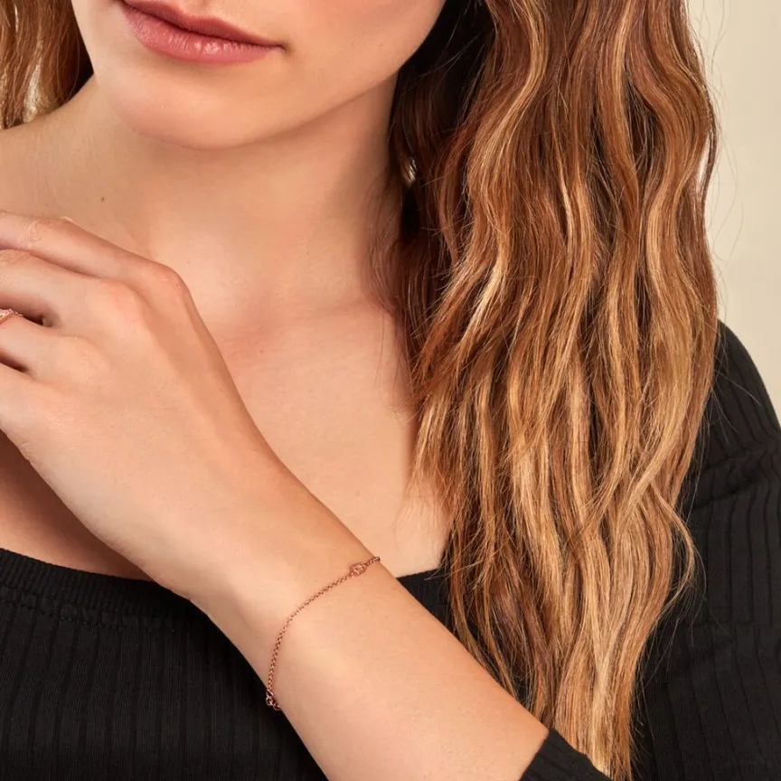 Bracelet Court Argent Rose 925/1000 Oxyde De Zirconium Champagne Forme Baguette Entourage Perlé Maille Forçat 13+3cm