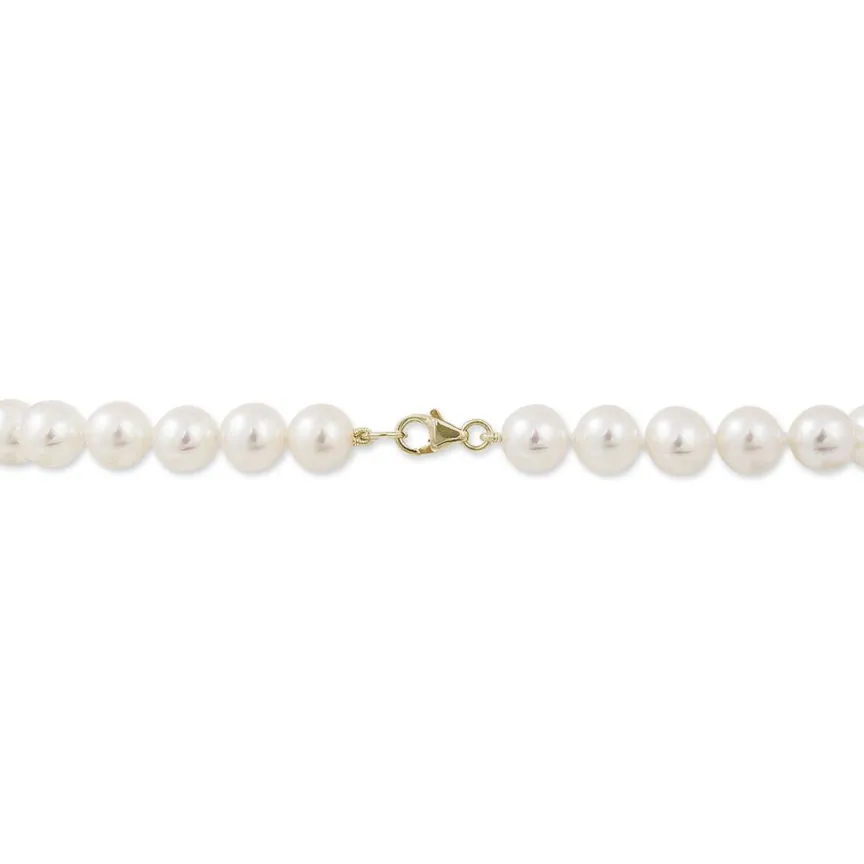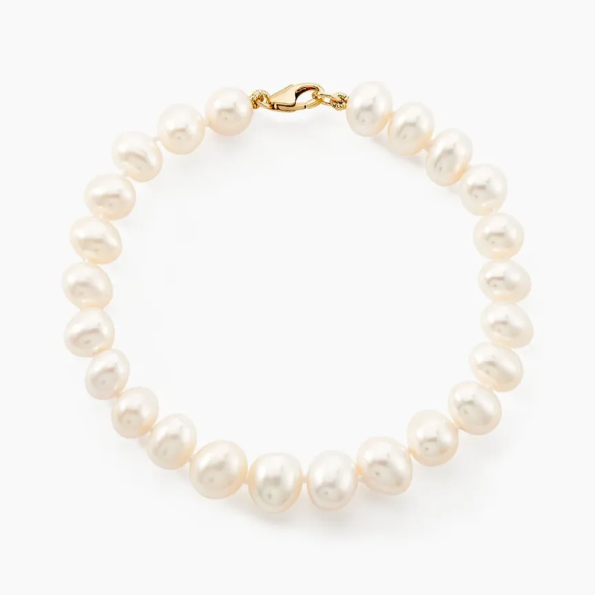 Bracelet Or Jaune 375/1000 Perles De Culture 6.5/7mm Baroques Blanches 23cm