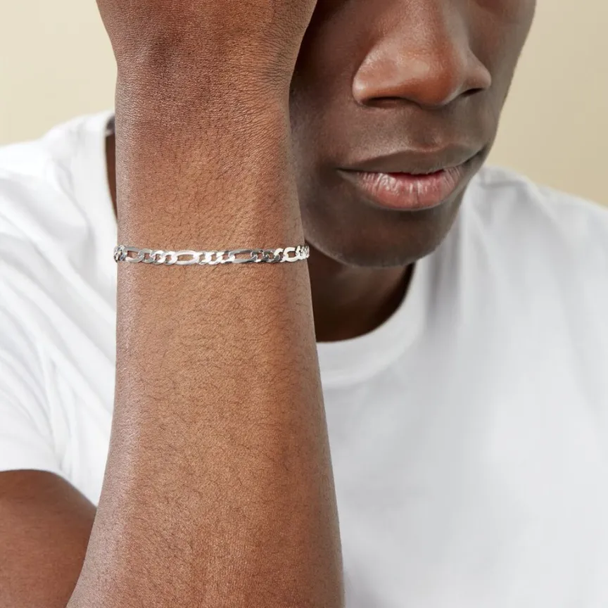 Bracelet Argent Blanc 925/1000 Maille Alternee 1/3 Largeur 5.2mm 19cm