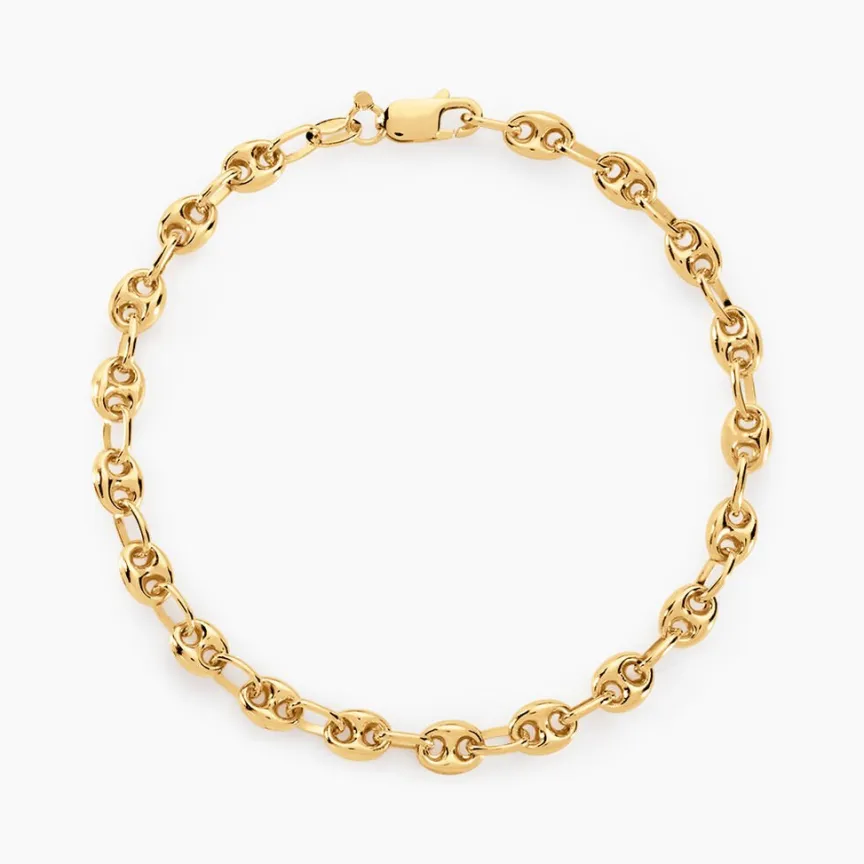 Bracelet Or Jaune 750/1000 Maille Grain De Café Largeur 4.7mm 19cm