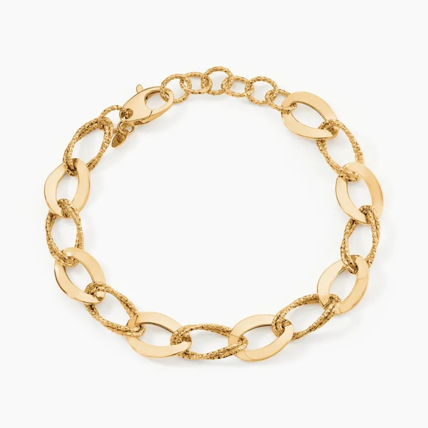 Bracelet Maille Or Jaune 375/1000 Maille Ovale Et Ronde Largeur 11.7mm 24cm