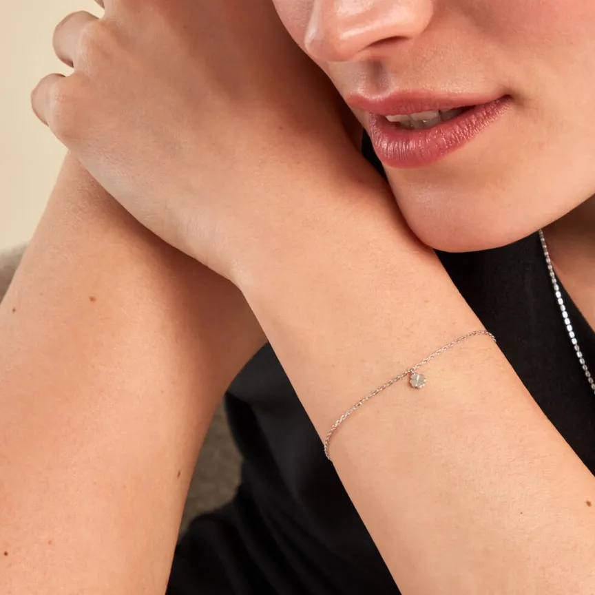 Bracelet Argent Blanc 925/1000 Trèfle Maille Forçat 16+3cm