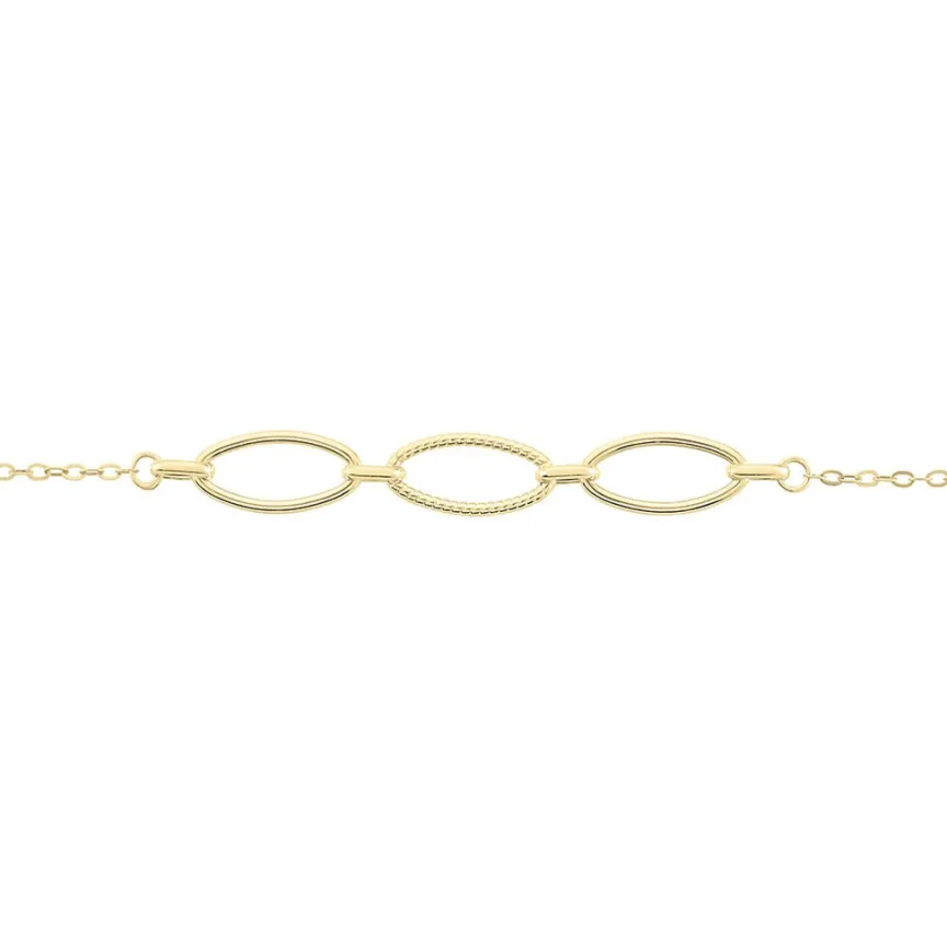 Bracelet Or Jaune 375/1000 Maillons Maille Forçat 19cm
