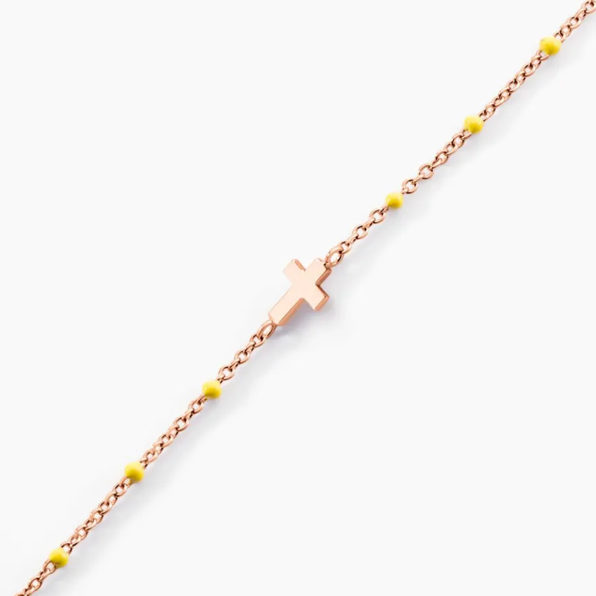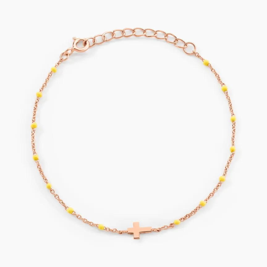 Bracelet Argent Rose 925/1000 Croix Boules émail Maille Jaseron 16+3cm