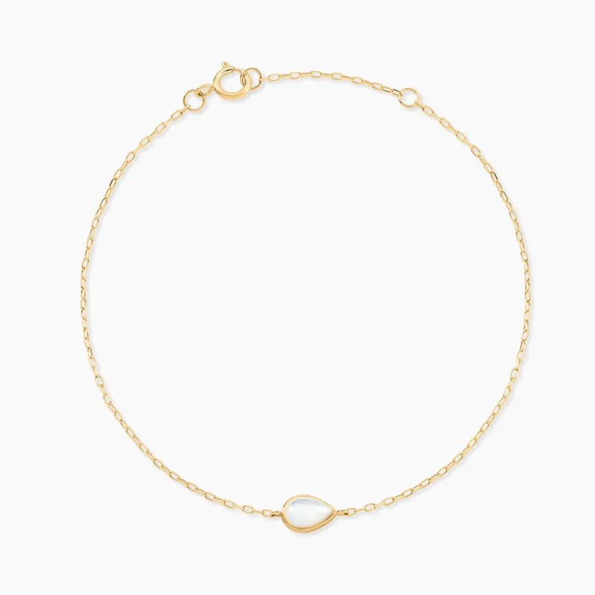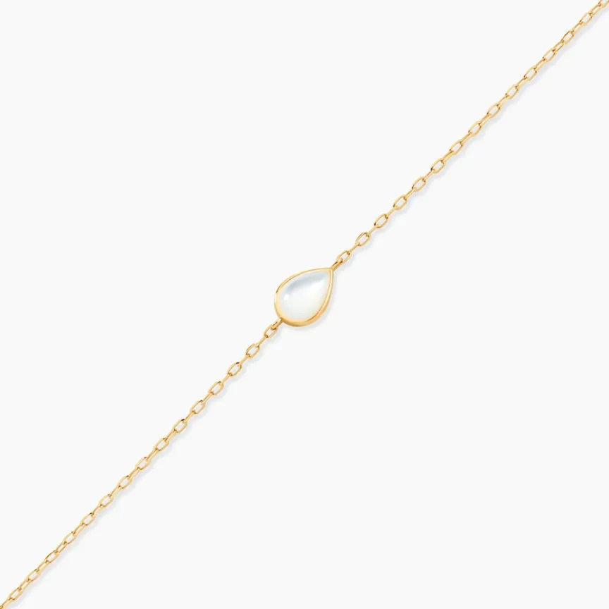Bracelet Or Jaune 375/1000 Ondée Goutte Nacre Maille Forcat 16+2Cm