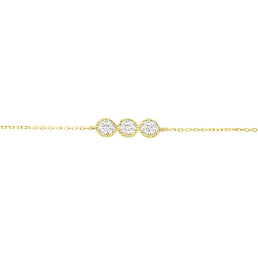 Bracelet Or Jaune 375/1000 3 Cercles Pastille Pavage Oxyde Blanc Maille Forçat 16+2 Cm