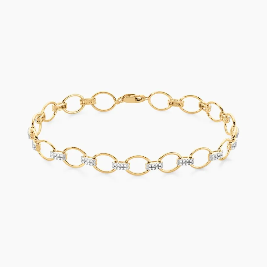Bracelet Or Jaune 375/1000 Maillons Et Diamants 19cm
