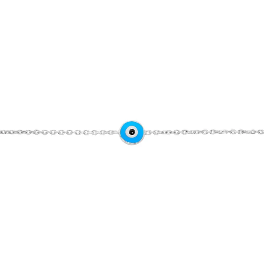 Bracelet Argent Blanc 925/1000 艙il Grec Email Bleu Maille Forcat 16+3cm