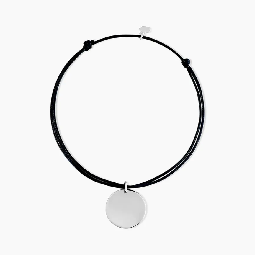 Bracelet Argent Blanc 925/1000 Pastille Cordon Noir Ajustable