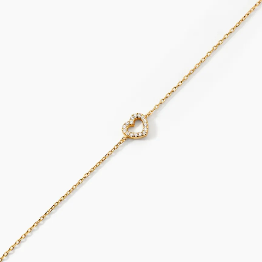 Bracelet Argent Jaune 925/1000 C艙ur Penche Ajoure Pavage Oxydes De Zirconium 16+3cm