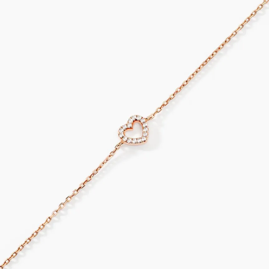 Bracelet Argent Rose 925/1000 C艙ur Penche Ajoure Pavage Oxydes De Zirconium 18.5cm