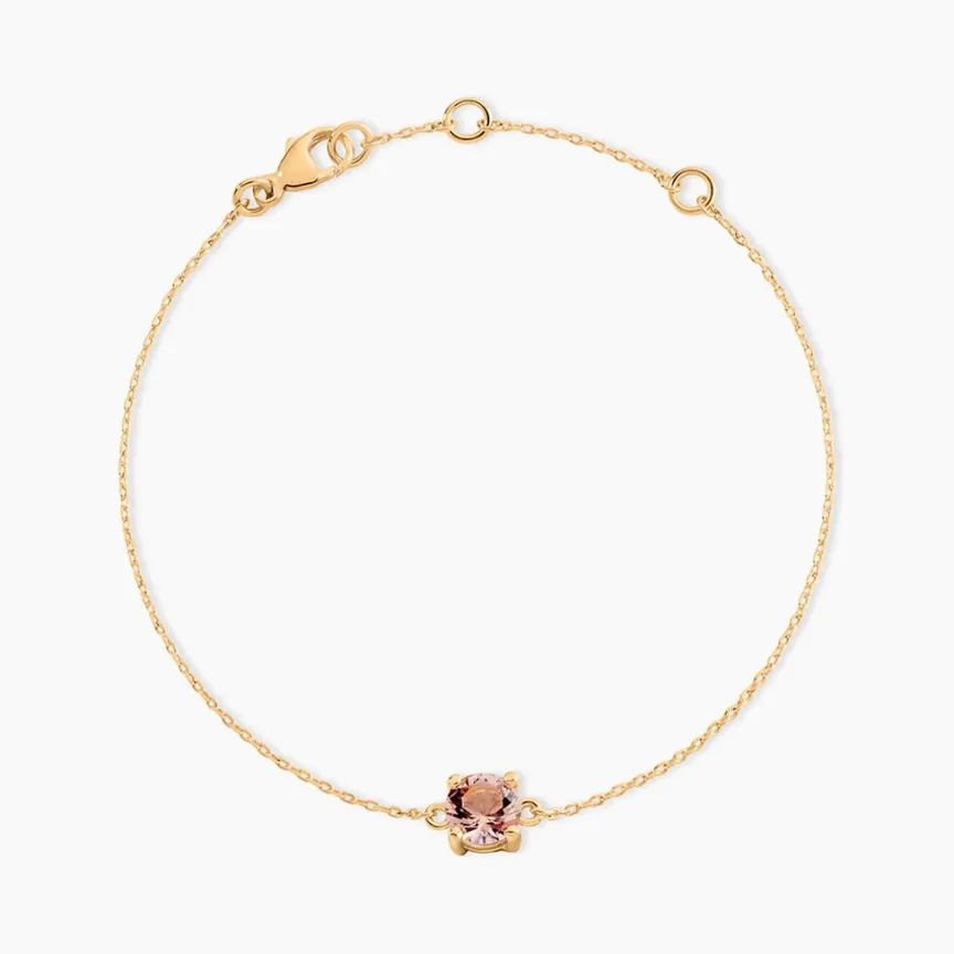 Bracelet Plaqué Or Jaune Oxyde De Zirconium Rose 6mm 4 Griffes Maille Forçat 19cm