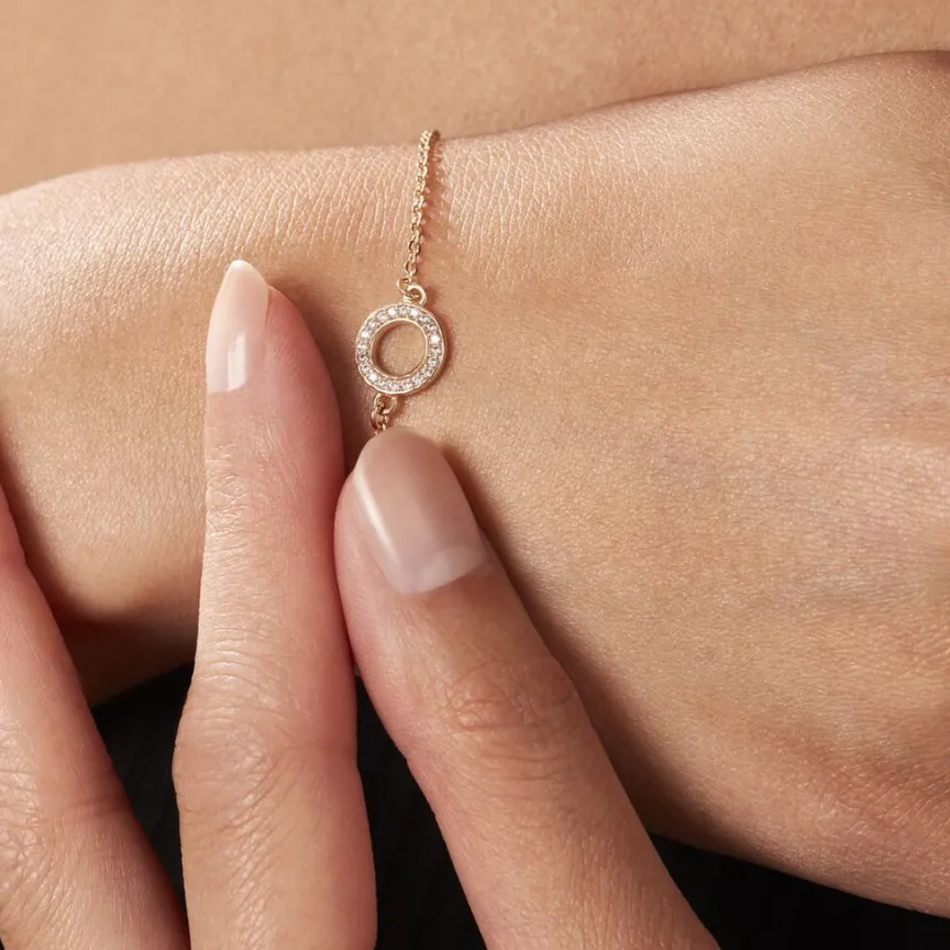 Bracelet Plaqué Or Jaune Cercle Ajoure Serti Griffes Oxydes De Zirconium Maille Forcat 18cm
