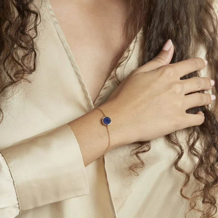 Bracelet Plaqué Or Pastille Sodalite Bleue Maille Forcat 18cm