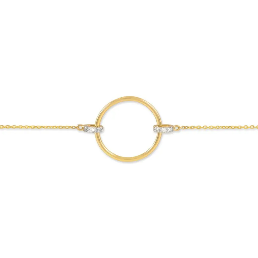 Bracelet Or Jaune 375/1000 Cercle Diamants 18.5cm