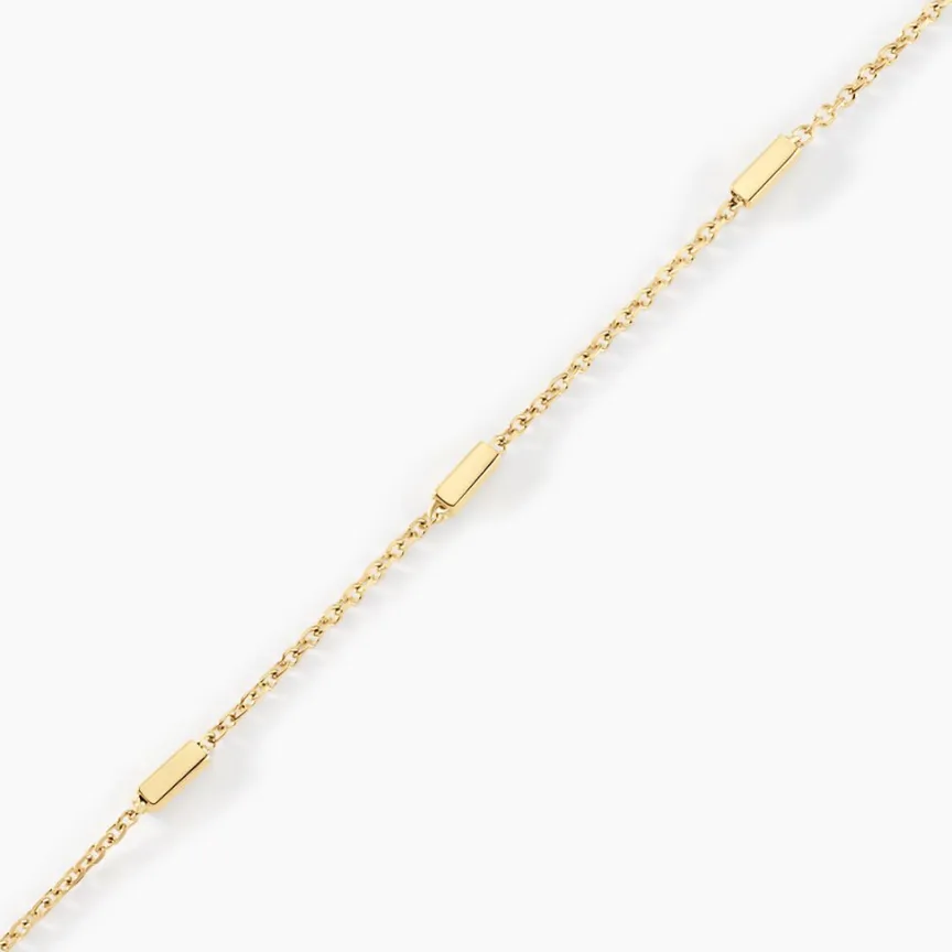 Bracelet Or Jaune 375/1000 rain Alternance De Barrettes Et Chaine Maille Jaseron 16+2cm