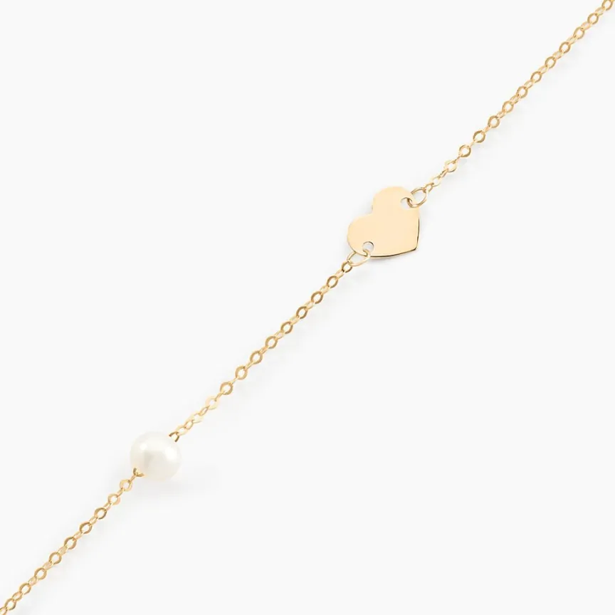 Bracelet Or Jaune 375/1000 C艙ur Et Perle De Culture 15cm