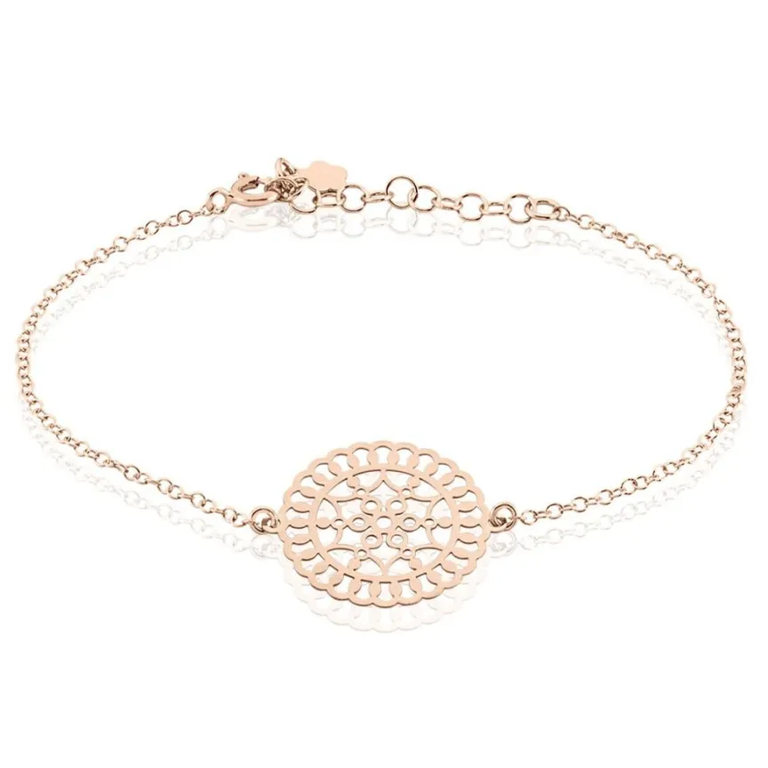 Bracelet Argent Rose 925/1000 Rosace Ajouree Maille Forcat 20cm