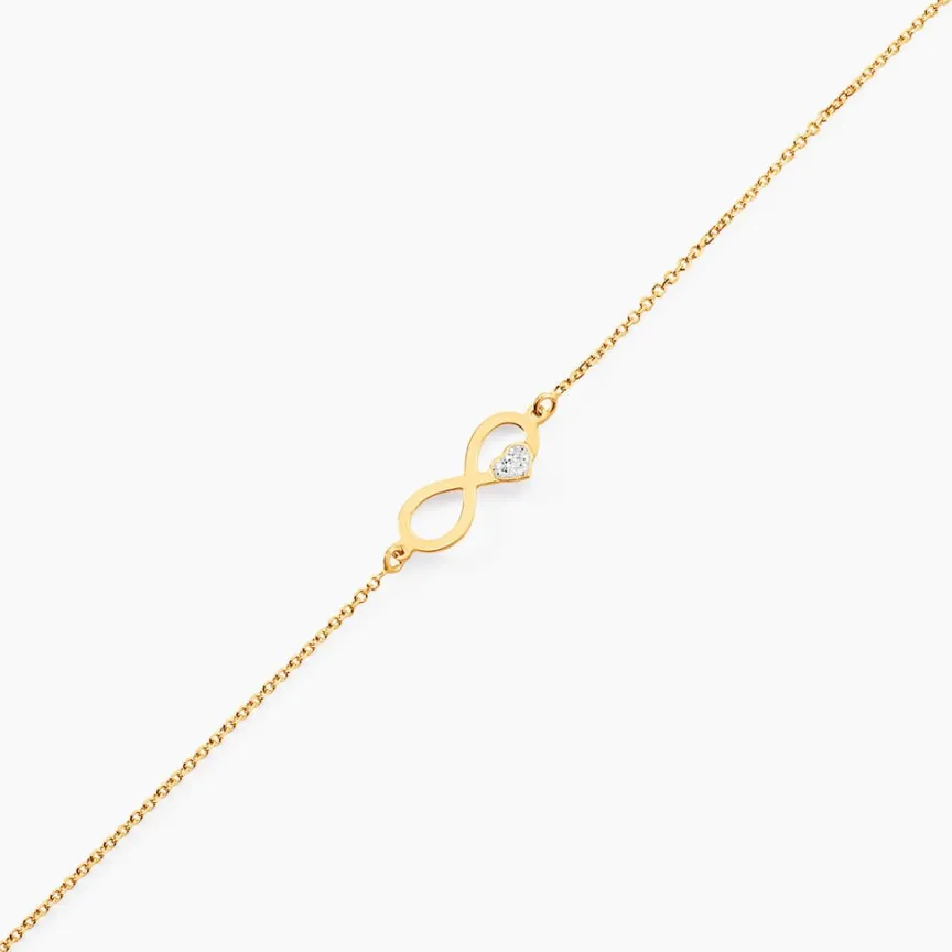 Bracelet Or Jaune 375/1000 Infini Et C艙ur Glitter Argente Maille Jaseron 16+2cm