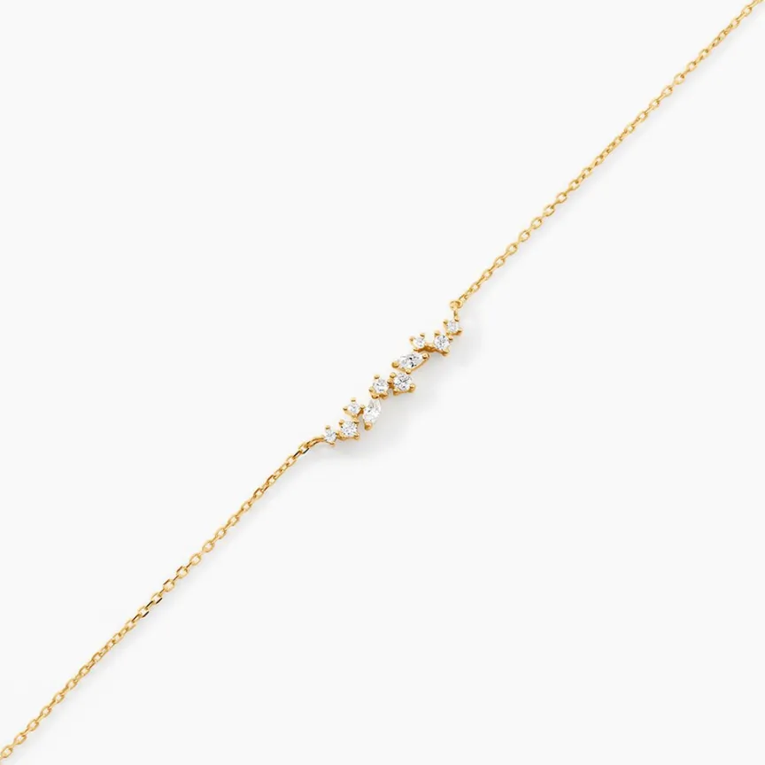 Bracelet Or Jaune 375/1000 Oxydes De Zirconium Serti Griffes Maille Forcat 16+2Cm