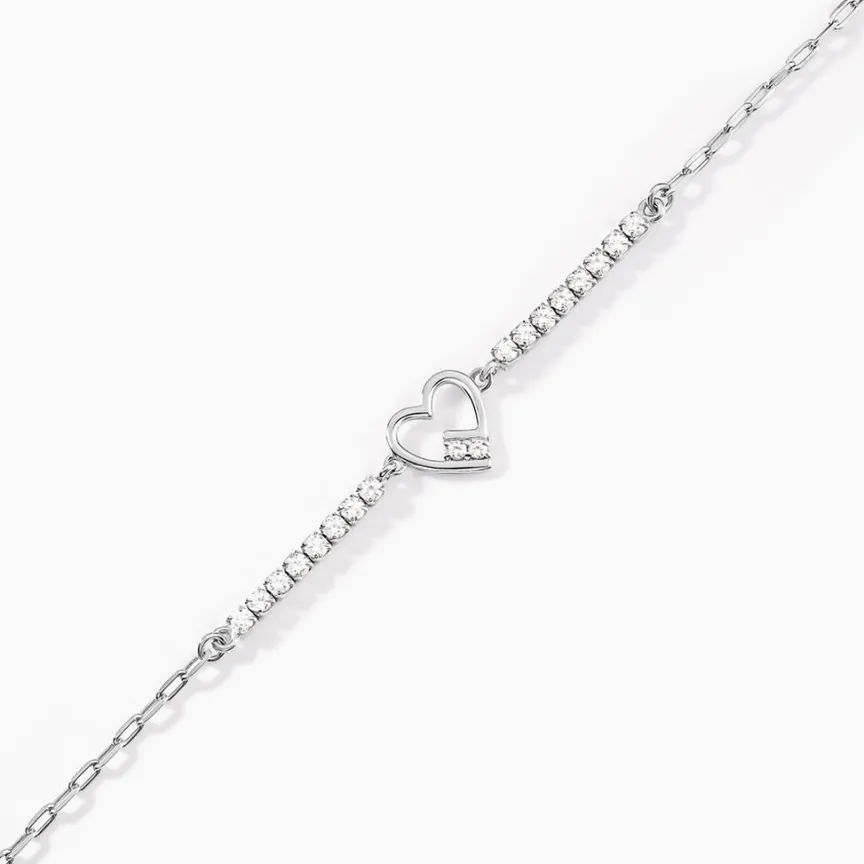 Bracelet Argent Blanc 925/1000 C艙ur Effet Riviere Oxydes De Zirconium Maille Forçat 16+3cm