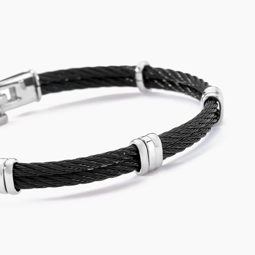 Bracelet Acier Inoxydable Blanc 2 Cables Acier Inoxydable Blanc Noirs Liens Acier Inoxydable Blanc 21cm