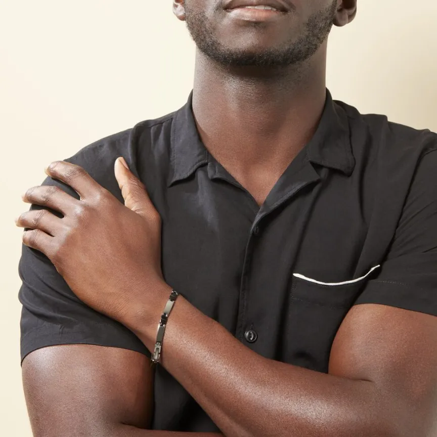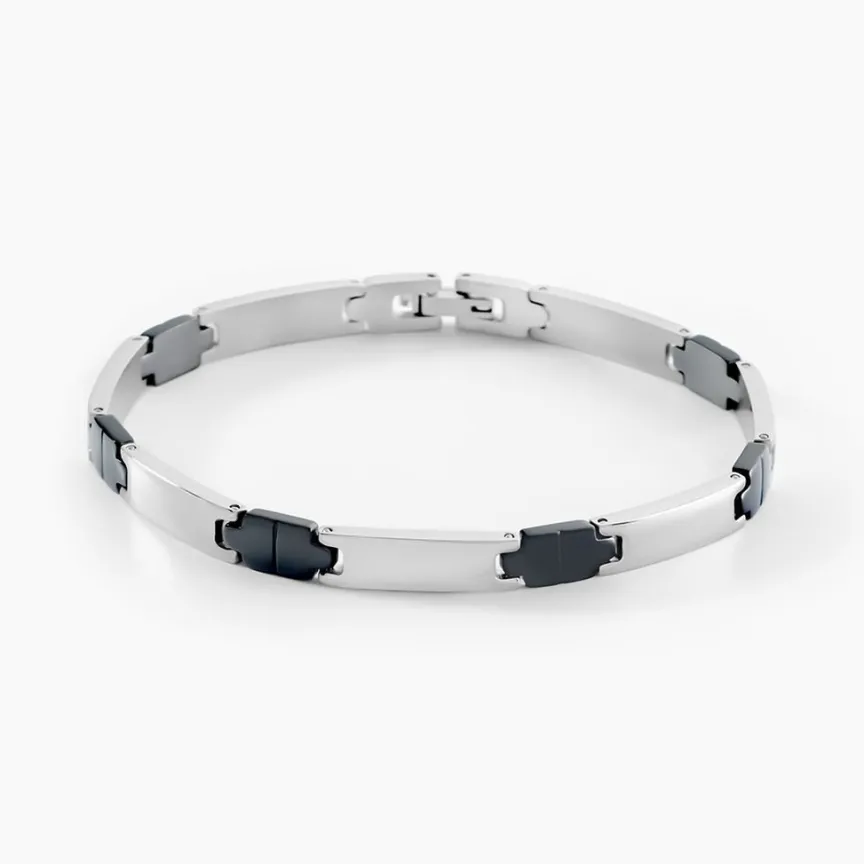 Bracelet Acier Inoxydable Blanc Alterne Plaque Noir 19.5cm