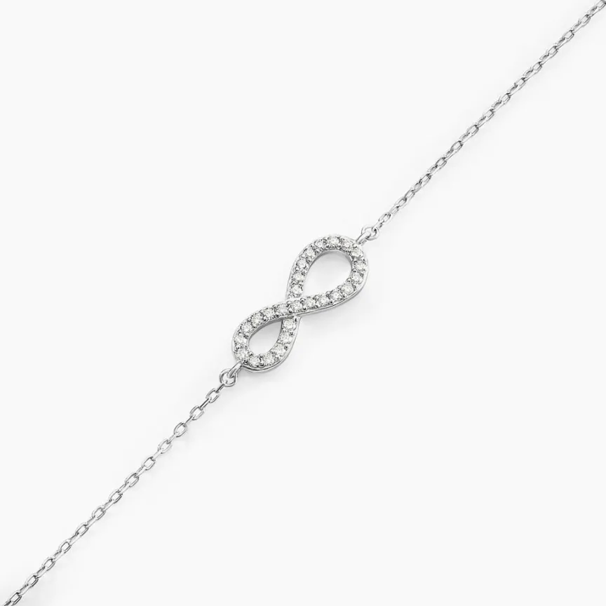 Bracelet Argent 925/1000 veda Signe Infini Pavage Oxydes De Zirconium Chaine Maille Forcat 18cm
