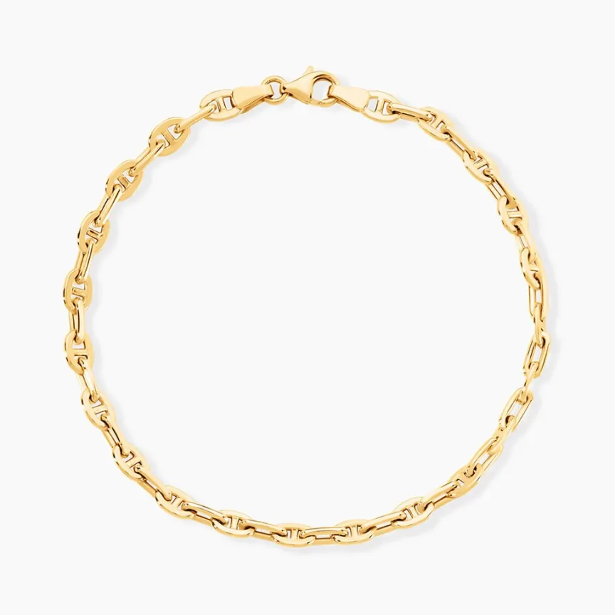 Bracelet Or Jaune 375/1000 Maille Marine Plate 4Mm 21Cm