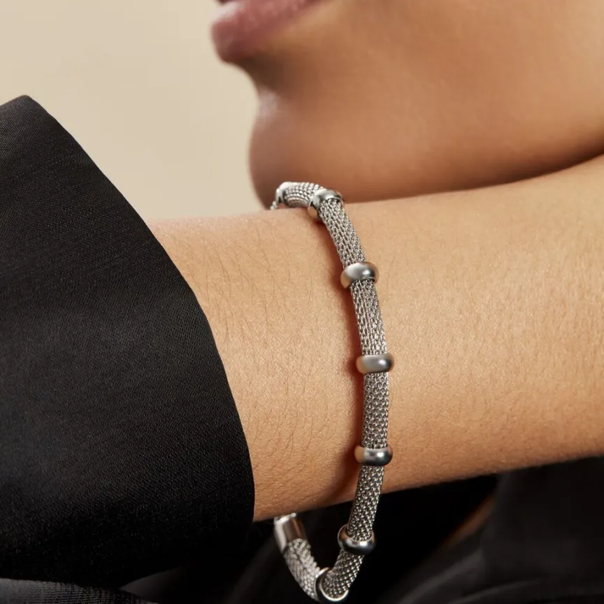 Bracelet Acier Inoxydable Blanc Maille Popcorn Anneaux Largeur 4mm 20cm