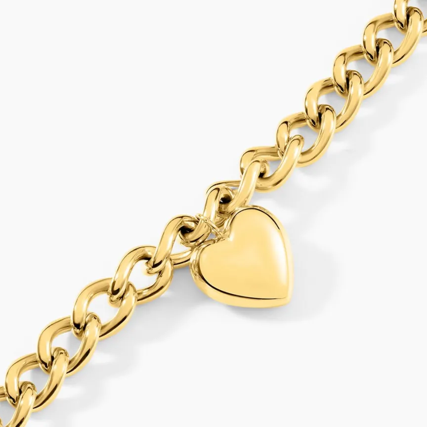 Bracelet Acier Jaune C艙ur Brillant Maille Forcat Largeur 9mm 19cm