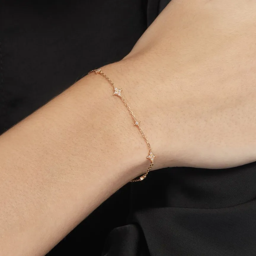 Bracelet Plaque Or Etoiles Oxydes De Zirconium 18cm
