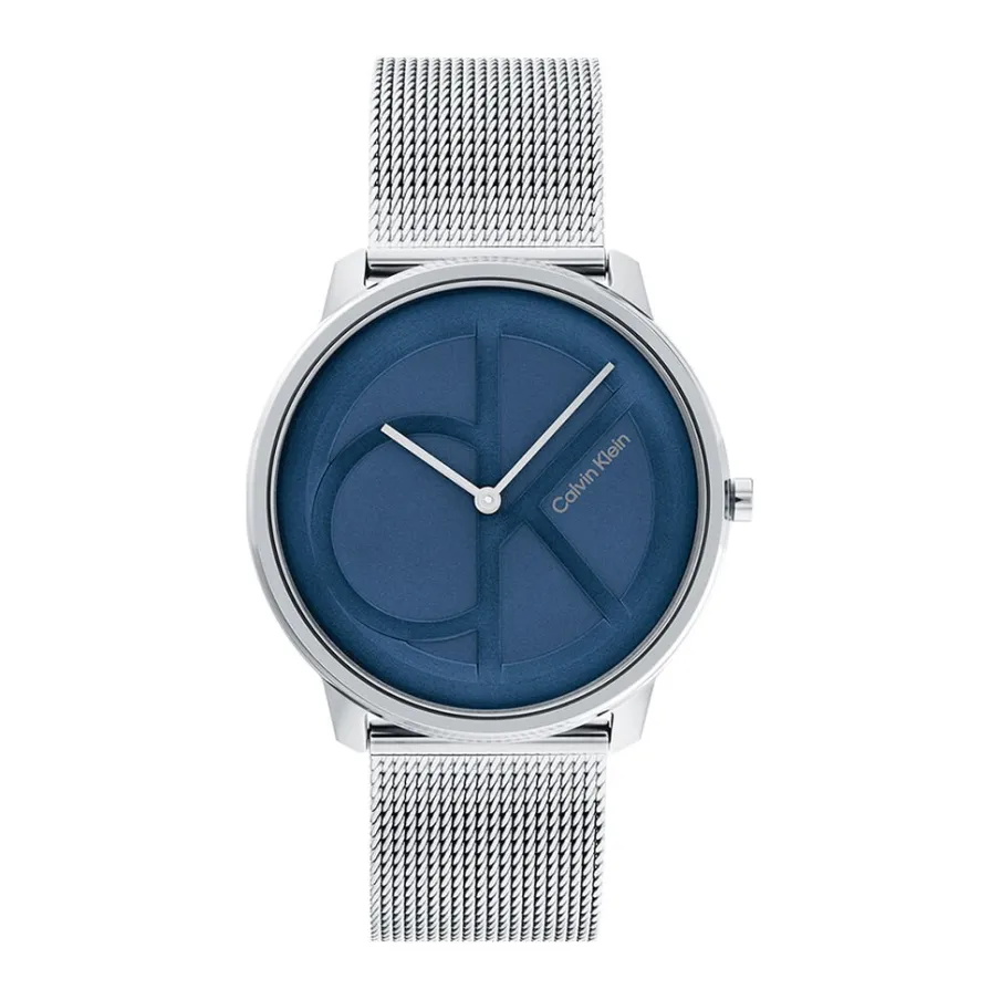 Montre Calvin Klein Iconic Mesh Acier Blanc Ronde Quartz 40mm Fond Bleu Bracelet Maille Milanaise Acier Argenté 25200031