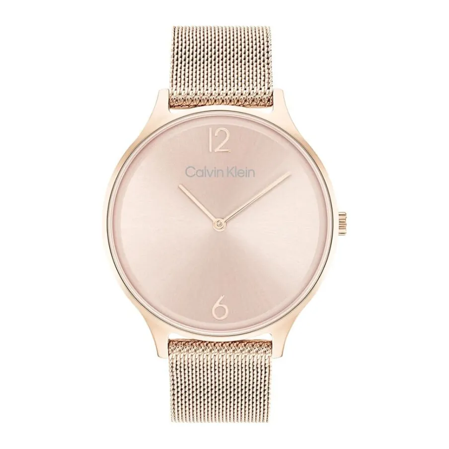 Montre Calvin Klein Timeless 2h Acier Rose Ronde Quartz 38mm Fond Rose Bracelet Maille Milanaise Acier Rose 25200002
