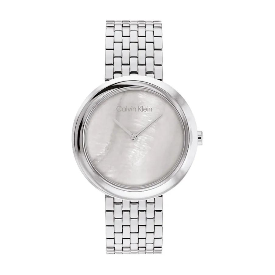 Montre Calvin Klein Twisted Bezel Boitier Acier Argente Rond 34mm Quartz Fond Gris Bracelet Acier Argente 25200320
