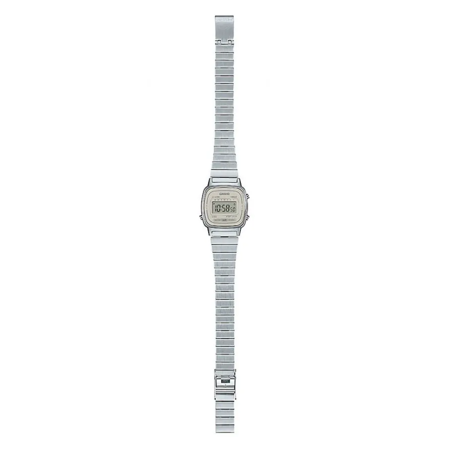 Montre Casio Collection Vintage Resine Argente Carre Quartz 24.6mm Fond Gris Bracelet Acier Argente Crante La670wea-8aef