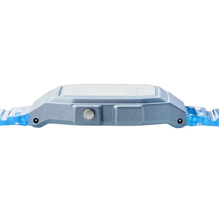 Montre Casio Collection Vintage Edgy Resine Bleu Rectangulaire Quartz Digitale 38.2mm Fond Bleu Bracelet Resine Bleu F-91ws-2ef