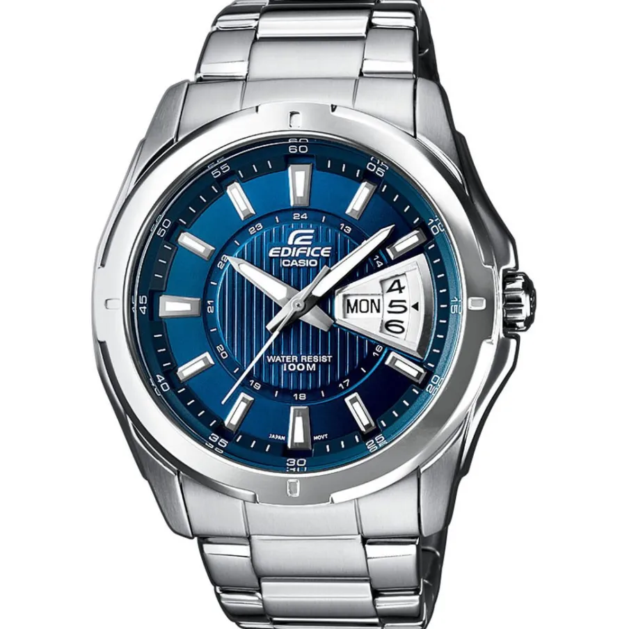 Montre Casio Edifice Acier Blanc Ronde Quartz 49mm Fond Bleu Bracelet Acier Blanc Ef-129d-2avef
