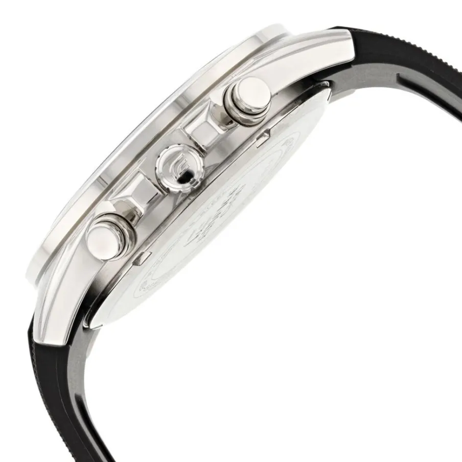 Montre Casio Edifice Acier Blanc Ronde Quartz Chronographe 53mm Fond Noir Bracelet Resine Noire Efv-550p-1avuef