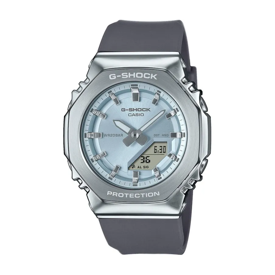 Montre Casio G-shock Anadigit Acier Argente Ronde Quartz Multifonctions 40.50mm Fond Bleu Sky Bracelet Resine Noir Gm-s2110-2aer
