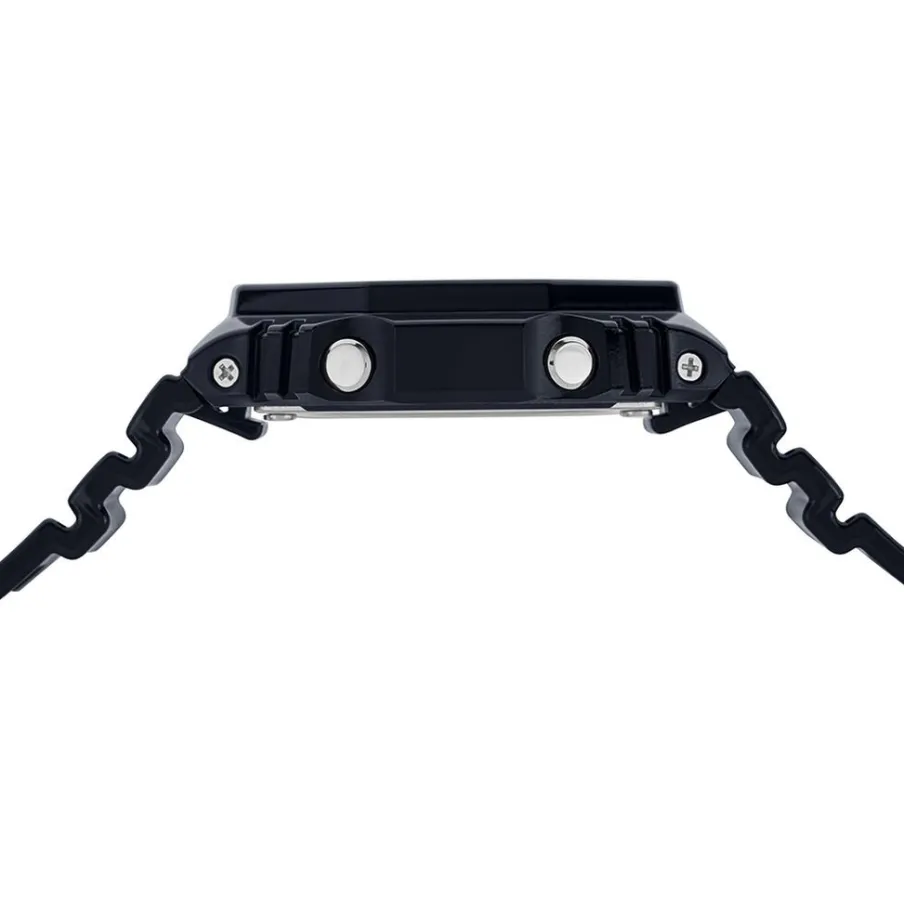 Montre Casio G-shock Anadigit Resine Noire Ronde Quartz Multifonctions 45.40mm Lunette Noire Fond Dore Bracelet Resine Noire Ga-2100gb-1aer